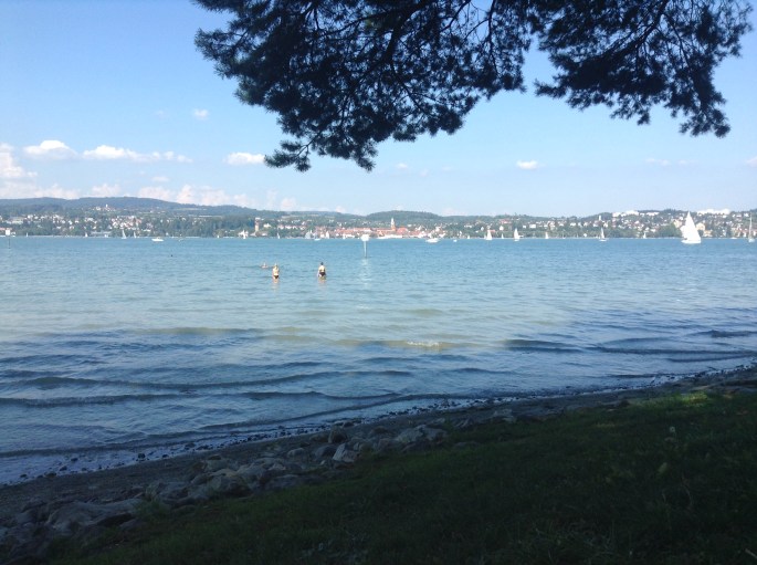 Los chicos con los que fui a Constanza fueron con la intención de bañarse en el lago. Por mi parte, aunque estaba encantada con el paisaje, no me pareció muy atractiva la idea de bañarme en un lago, así que los esperé en la orilla junto a nuestro picnic.