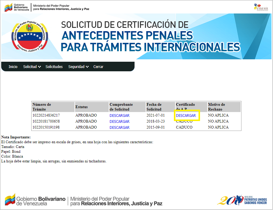 Ahí podrás ver las solicitudes anteriores y la actual, para que así puedas descargar la actual.