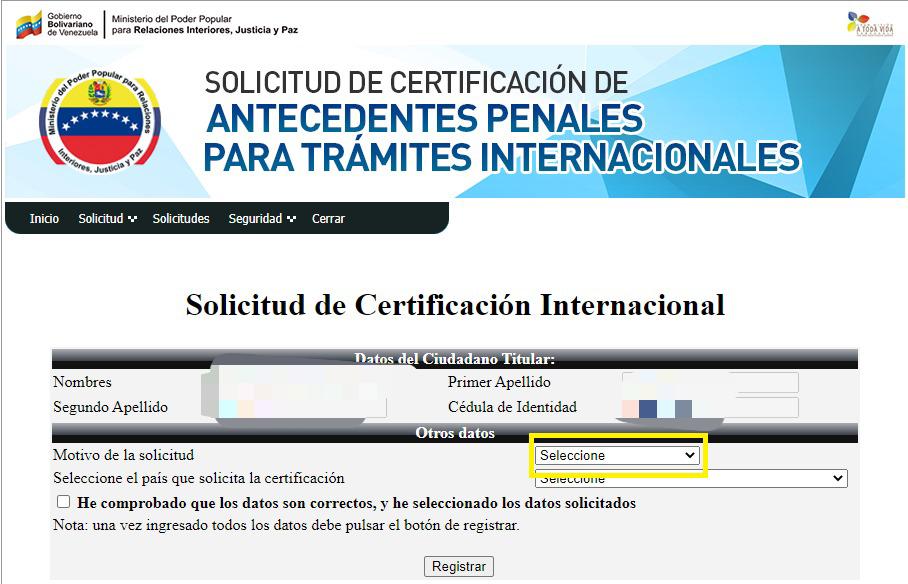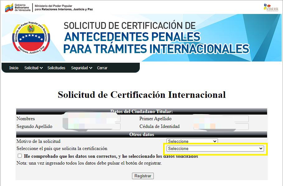 1. Ingresa a certificacioninternacional.mijp.gob.ve (clic aquí).