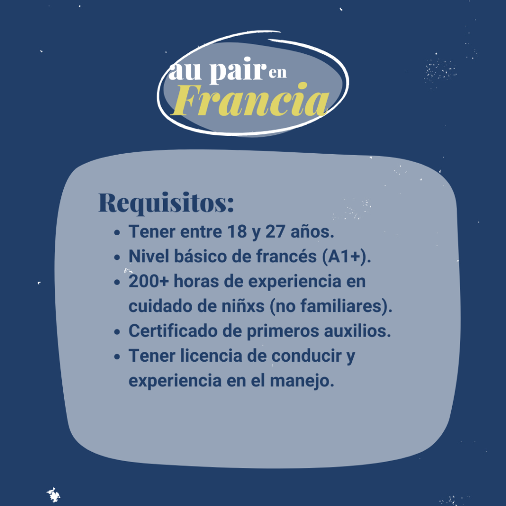 La colocación del au pair en Francia puede tener una duración de entre uno (1) y doce (12) meses, dependiendo del tipo de programa. Algunas agencias ofrecen el programa Summer Au Pair, el cual está diseñado para una estancia corta (1 a 3 meses). El programa Au Pair de estancia larga puede ser prolongado hasta un máximo de dos (2) años.